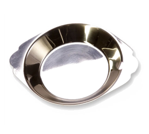 Au Gratin Dish, 8 oz., 7-1/4" long, round, mirror finish stainless steel