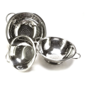 Colander, 8 qt., 13-3/4" dia., mirror polished stainless steel, footed bottom and 2 side handles