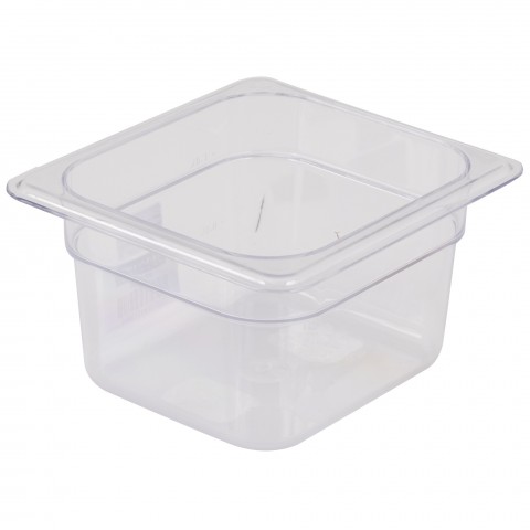 Steam Table Food Pan, 1/6 size, 4"D, polycarbonate, clear