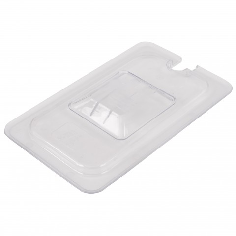 Food Pan Lid, quarter size, flat with notch, polycarbonate, clear