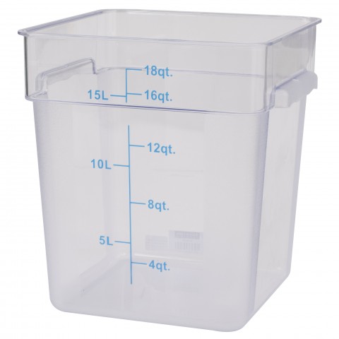 Food Storage Container, square, 18 qt., polycarbonate, clear, NSF