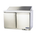 Sandwich/Salad Top Refrigerator, two-section, self-contained refrigeration, (12) 1/6 pans x 4" deep included, full length 5/8" thick poly-vinyl cutting board, (2) self-closing doors remain open past 90°, programmable digital display with self diagnostic, EZ slide out condenser, cool air intake, stainless steel front, sides, & top, interior: stainless steel top, back, & door liner, stainless steel floor, (2) PVC coated shelves, casters (2 front brakes), R290 Hydrocarbon refrigerant, 115V/60/1-ph, 4.3 amps, 1/2 HP, cord, NEMA 5-15P, ETL-Sanitation, cETLus