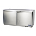 Undercounter Refrigerator, two-section, 61-1/5"W, self-contained refrigeration, (2) self-closing doors remain open past 90°, programmable digital display with self diagnostic, EZ slide out condenser, cool air intake, stainless steel front, top, & sides, interior: stainless steel top, back, & door liner, stainless steel floor, ABS plastic sides, (2) PVC coated shelves, casters (2 front brakes), 115V/60/1-ph, 5 amps, 3/8 HP, 10 ft cord with NEMA 5-15P, UL, cUL, NSF 7, UL-471