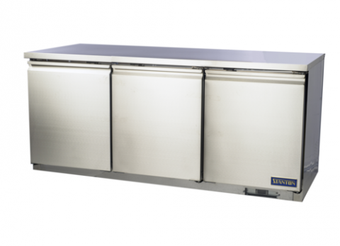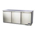 Undercounter Refrigerator, three-section, self-contained refrigeration, (3) hinged solid doors, (3) PVC coated shelves, programmable digital display with self diagnostic, EZ slide out condenser, cool air intake, stainless steel front, top, & sides, interior: stainless steel top, back, & door liner, stainless steel floor, ABS plastic sides, (4) casters (2 with brakes), R290 Hydrocarbon refrigerant, 3/8 HP, 115V/60/1-ph, 3.5 amps, cord, NEMA 5-15P, ETL-Sanitation, cETLus