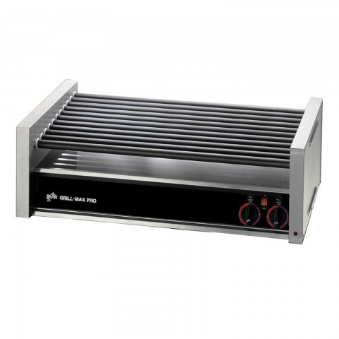 Grill-Max® Hot Dog Grill, roller-type, stadium seating, Duratec® coated non-stick rollers, capacity 45 hot dogs, analog controls for front and rear zones, stainless steel construction, cULus, UL EPH Classified, Made in USA