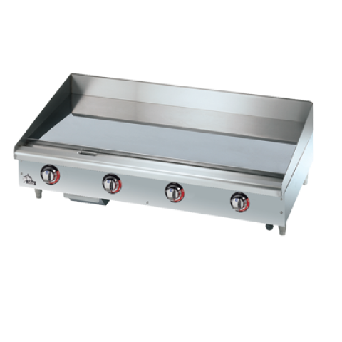 Star-Max® Heavy Duty Griddle, electric, countertop, 48" W x 20-3/4" D cooking surface, 1" thick chrome griddle plate, 150°-450°F snap-action thermostat and 4000 watt element every 12", welded steel frame with stainless steel top and front, splash guard & grease trough, aluminized steel sides, chrome metal knobs, grease drawer, 4" steel legs, cULus, UL EPH Classified, CSA, Made in USA