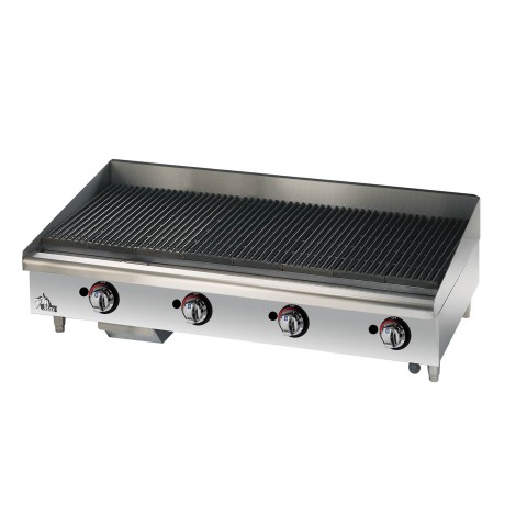 Star-Max® Charbroiler, gas, countertop, 48" W, cast iron 40,000 BTU burners with adjustable manual controls every 12", lava rock briquettes, welded steel frame with stainless steel top and front, aluminized steel sides, cast iron broiling grates, stainless steel water pan, splash guard & grease trough, 4" legs, 160,000 BTU, cULus, UL EPH (ships Natural Gas includes LP conversion kit)