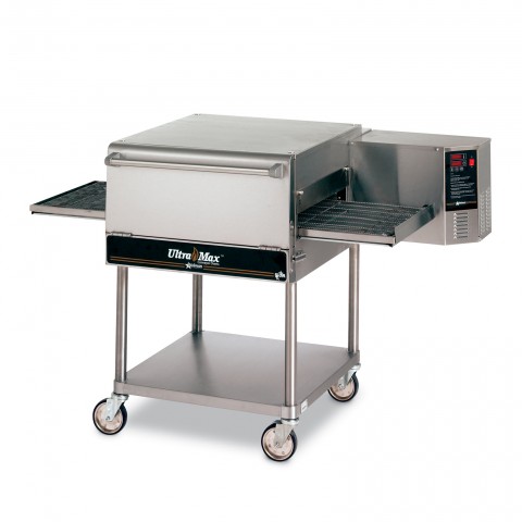 Ultra-Max® Impingement Conveyor Oven, gas, countertop, single deck, 54" conveyor length, 18" wide x 28" length cook chamber, programmable controls for (6) menu presets, conveyor left-to-right standard, field convertible for right-to left, stainless steel bake chamber with easy-to-clean impingement fingers, stainless steel construction, 40,000 BTU, 120v/60/1-ph, 0.5 amps, cord, NEMA 5-15P, cULus, UL EPH Classified, Made in USA
