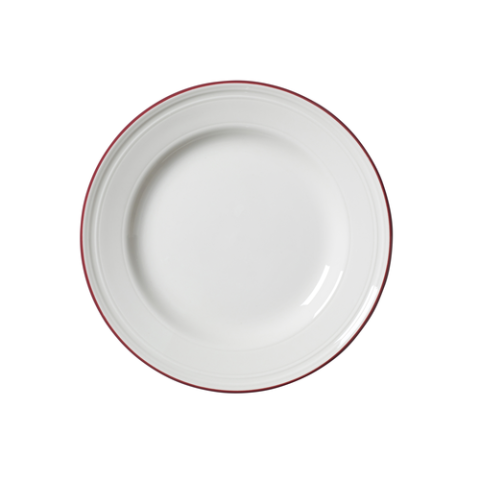 Plate, 8.0", Bead, Maroon Band, Steelite Performance, Round, Alumina Vitrified, Oven Safe Up To 530° F/275° C, 12 Per Case, Crisp, Timeless, and Elegant Styling (minimum = case quantity) (STOCK item)