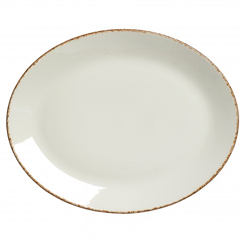 Oval Coupe Platter, 13.5" x 10.625", Dapple, Brown, Steelite Performance, Oval, Alumina Vitrified, Oven Safe Up To 530° F/275° C, 12 Per Case, Retro Rustic Revival (minimum = case quantity) (STOCK item)