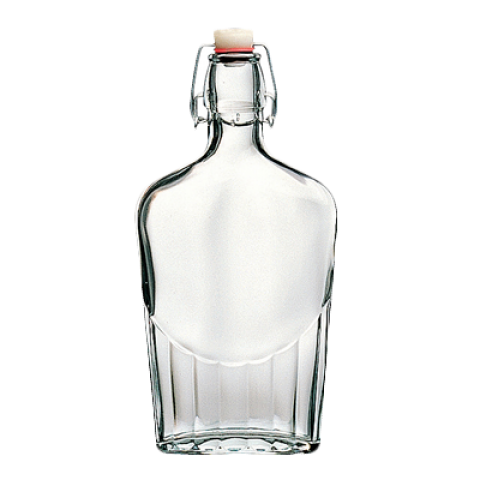 Pocket Flask, 8.5 oz, 3.0" x 8.5", Swing Bottle, Bormioli Rocco, Soda Lime (minimum = case quantity, 30 each per case) (STOCK item)