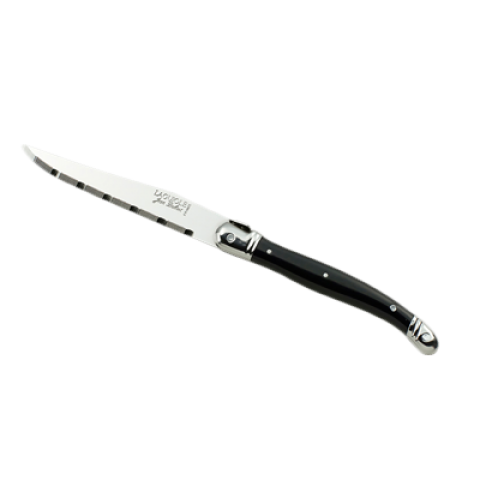 Steak Knife, 9", 1.2 mm, serrated, black curved handle, 13/0 stainless steel, Jean Dubost, Laguiole Black (minimum = case quantity) (stock item) (6 each per pack)