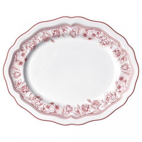 Oval Platter, 13.0" x 10.5" x 1.0", Adelina, Hannah Maroon, Folio, Oval, Porcelain, (minimum order quantity = 144 pieces) (NON STOCK item)