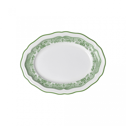 Oval Platter, 9.0" x 6.75" x 0.875", Adelina, Willow Rim Green, Folio, Oval, Porcelain, (minimum order quantity = 144 pieces) (NON STOCK item)