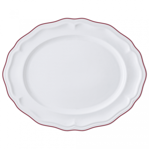 Oval Platter, 13.0" x 10.5" x 1.0", Adelina, Maroon Line, Folio, Oval, Porcelain, (minimum order quantity = 144 pieces) (NON STOCK item)
