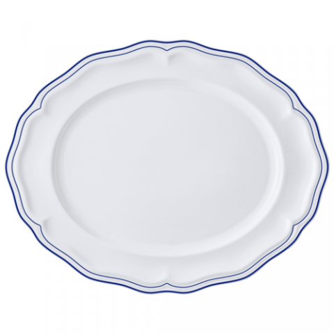 Oval Platter, 13.0" x 10.5" x 1.0", Adelina, Double Line Blue, Folio, Oval, Porcelain, (minimum order quantity = 144 pieces) (NON STOCK item)