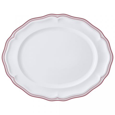 Oval Platter, 13.0" x 10.5" x 1.0", Adelina, Triple Line Maroon, Folio, Oval, Porcelain, (minimum order quantity = 144 pieces) (NON STOCK item)
