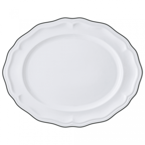 Oval Platter, 13.0" x 10.5" x 1.0", Adelina, Black Line, Folio, Oval, Porcelain, (minimum order quantity = 144 pieces) (NON STOCK item)