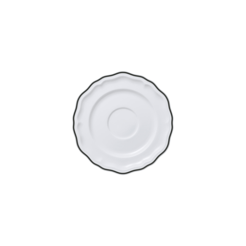 Saucer, 5.0" x 0.625", Adelina, Black Line, Folio, Round, Porcelain, (minimum order quantity = 144 pieces) (NON STOCK item)