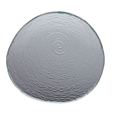 Round Platter, 10.125" x 9.625" x 1.125", Scape Glass, Clear, Creations, Round, Glass, Natural, Subtle Textures (minimum = case quantity) (STOCK item)