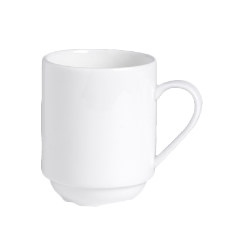 Mug, 10-1/2 oz., 4-1/4" dia. x 3-3/4"H, stackable, microwave/dishwasher safe, porcelain, white, Folio, Alpha Ceram, Stratford (minimum = case quantity) (stock item) (Formerly branded under Varick)