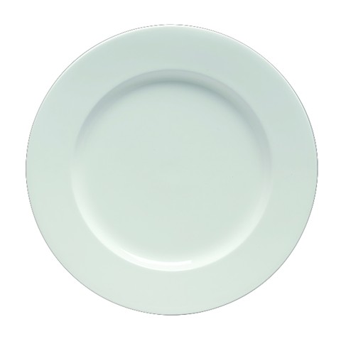 Plate, 7-1/2" dia., round, rimmed, microwave/dishwasher safe, 5 year edge chip warranty, porcelain, white, Folio, Alpha Ceram, Stratford (minimum = case quantity) (stock item) (Formerly branded under Varick)