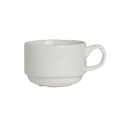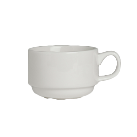 Cup, 7 oz., 4-3/8"L x 3-3/8"W x 2-1/4"H, stackable, round, microwave/dishwasher safe, porcelain, white, Folio, Alpha Ceram, Stratford (minimum = case quantity) (stock item) (Formerly branded under Varick)