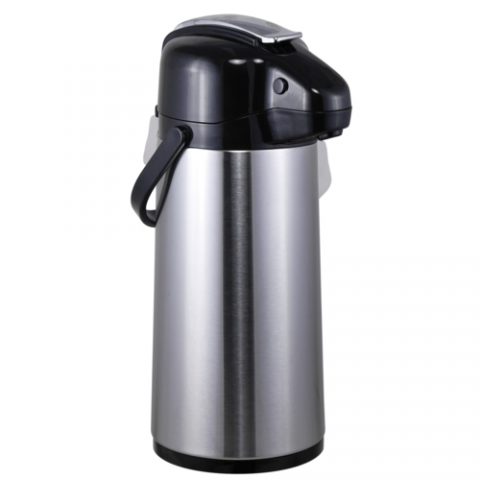 AIRPOT VACUUM INSULATED GLASS LINER WITH LEVER STAINLESS STEEL, 2.5 L, 8.375" x 16.125", Archer, Stainless Steel, Complements, Unique, Stainless Steel, Hand Wash Only, 6 Per Case, (minimum = case quantity) (STOCK item)