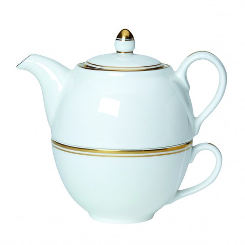 Tea For One Teapot Set, includes 16 oz. teapot and 9 oz. tea cup, stackable, bone china, William Edwards, Burnished Gold (minimum = case quantity) (stock item) (6 each per case)