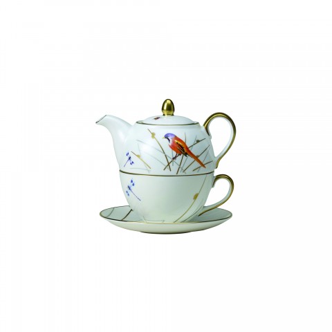 Tea For One Teapot Set, includes 16 oz. teapot and 9 oz. tea cup, stackable, bone china, William Edwards, Reed (minimum = case quantity) (stock item) (6 eac per case)