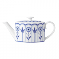 Teapot, 19.375 oz., 9.25"W x 3.75"D x 3.5"H, holds 2 cups tea, coupe, oval, bone china, Sultans Garden Blue, William Edwards (minimum = case quantity) (NON STOCK item)