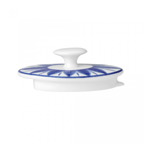 2 Cup Oval Teapot Lid, 3.875" x 2.375" x 1.375", Sultans Garden Blue, William Edwards, Round, Bone China (minimum = case quantity, 6 each per case) (NON STOCK item)