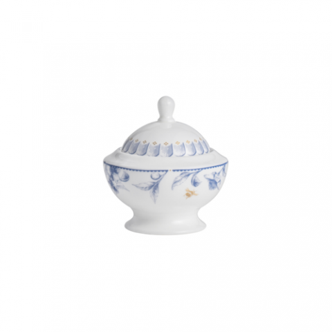 Covered Sugar, 9.0 oz, 4.5" x 2.75", Hive, Hive Blue, William Edwards, Round, Bone China (minimum = case quantity) (STOCK item)