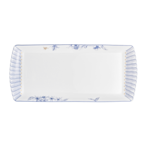 L/S Rectangle Tray, 13.375" x 6.0" x 0.75", Hive, Hive Blue, William Edwards, Rectangle, Bone China, (minimum = case quantity) (STOCK item)