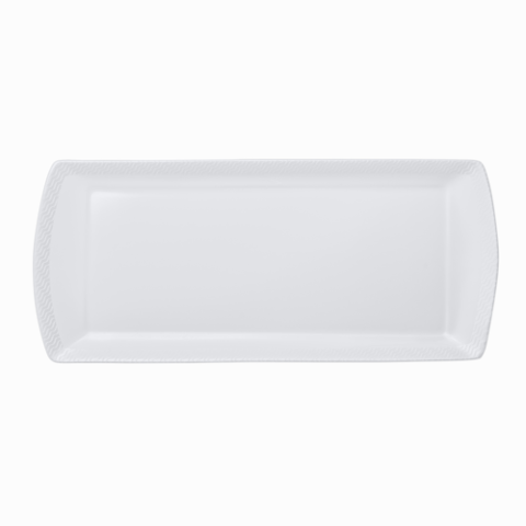 L/S Rectangle Tray, 13.375" x 6.0" x 0.75", Lahari, William Edwards, Rectangle, Bone China, Composed of classic and contemporary shapes, the Lahari Collection radiates a minimalist yet sophisticated design that gently orchestrates an impressive stage for culinary excellence. A delicate wave-like pattern proudly adorns each piece, offering a lustrous shimmer through a raised white mica that effortlessly coordinates a desired dining experience. Ideal for banqueting and upscale catering, Lahari presents a fresh and timely appeal for both contemporary and traditional dining rooms. (minimum = case quantity) (STOCK item)