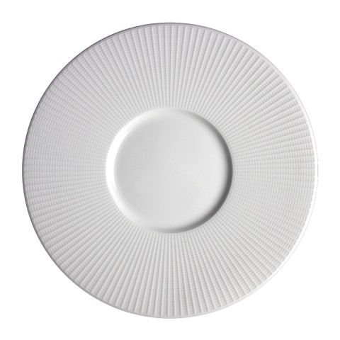 Small Well Gourmet Plate, 11.25", Willow, White, Steelite Distinction, Round, Alumina Vitrified, Oven Safe Up To 530° F/275° C, 6 Per Case, Gracefully Crafted Interwoven Design (minimum = case quantity) (STOCK item)