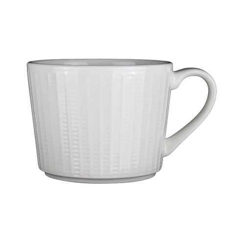 Can Cup, 8.0 oz, 4.5" x 2.625", Willow, White, Steelite Distinction, Alumina Vitrified, Oven Safe Up To 530° F/275° C, 36 Per Case, Gracefully Crafted Interwoven Design (minimum = case quantity) (STOCK item)