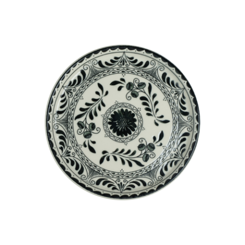 Plate, 7.5", Talavera Motiva Black, Anfora, Round, Alumina Vitrified, (minimum = case quantity) (STOCK item)