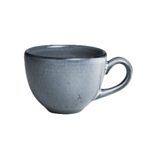 Coffee Cup, 8-1/4 oz., 4-3/4" dia. x 2-3/4"H, semi-transparent blue/gray glaze, shadow rim, Anfora, Denali Gray (minimum = case quantity) (stock item)