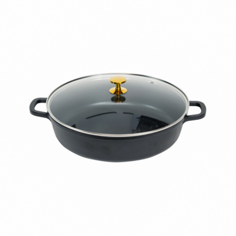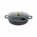 Casserole Dish with Gold Knob Glass Lid, 6.0 qt, 16.5" x 13.25" x 6", Round, Mixed Materials, Black, Aluchef (minimum = case quantity, 4 each per case) (STOCK item)
