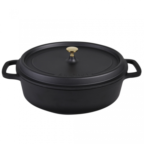 Roaster with Gold Knob, 8.0 qt, 18.25" x 12" x 7", Oval, Mixed Materials, Aluchef, Matte Black (minimum = case quantity, 4 each per case) (STOCK item)