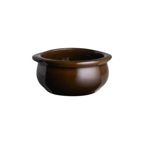 Onion Soup Bowl, 12 oz., 4-1/2" dia. (5" with handle) x 2-1/4"H, round, fully vitrified, oven & microwave safe, lead-free, Laredo Brown (minimum = case quantity) (stock item)