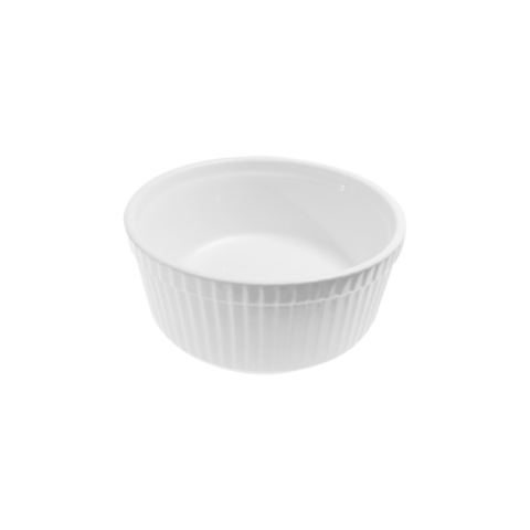 Ramekin, 5 oz., 3-5/8" dia. x 1-5/8"H, round, rolled edge, fluted, fully vitrified, oven & microwave safe, lead-free, ceramic, Ultra White (minimum = case quantity) (stock item)