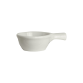 Onion Soup Bowl, handled, 10 oz., 4-3/4" dia. (7" with handle) x 2"H, round, rolled edge, fully vitrified, oven & microwave safe, lead-free, ceramic, White (minimum = case quantity) (stock item)