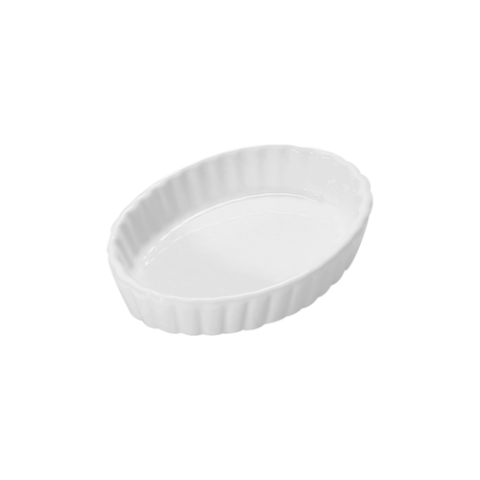 Creme Brulee Dish, 5 oz., 5-1/4"L x 4"W x 1-1/8"H, oval, fully vitrified, oven & microwave safe, lead-free, ceramic, Ultra White (minimum = case quantity) (stock item)