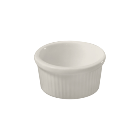 Ramekin, 4 oz., 3-1/4" dia. x 1-1/2"H, round, rolled edge, fluted, fully vitrified, oven & microwave safe, lead-free, ceramic, White (minimum = case quantity) (stock item)