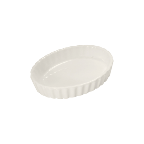 Creme Brulee Dish, 6 oz., 5-5/8"L x 4"W x 7/8"H, oval, fully vitrified, oven & microwave safe, lead-free, ceramic, White (minimum = case quantity) (stock item)