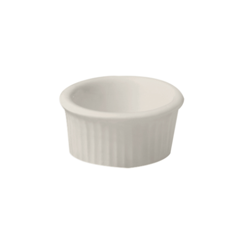 Ramekin, 1 oz., 2-1/4" dia. x 1-1/4"H, round, rolled edge, fluted, fully vitrified, oven & microwave safe, lead-free, ceramic, White (minimum = case quantity) (stock item)