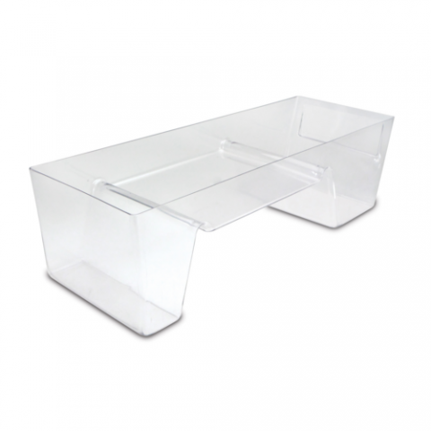 Food Bin with Falso Bottom, 4.5 gal., 27"W x 10"D x 7-1/2"H, clear, rectangular, PETG Plastic, Delfin Supermarket (minimum = case quantity, 4 per case) (STOCK item)