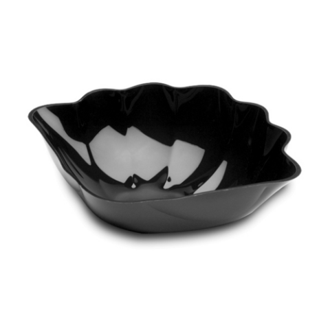 Clam Shell Dish, 11"W x 9"D x 3-3/4"H, black, unique, acrylic plastic, Delfin Supermarket (minimum = case quantity, 6 per case) (STOCK item)